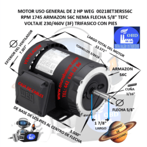 00218ET3ERS56C MOTOR 2HP WEG 1750RPM BRIDA 56C 230/460V W22