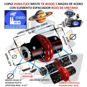 WES50 COPLE CON ELEMENTO ESPACIADOR FLEXIBLE ROJO MARCA TB Wood´s EXTERIOR 11.34” LARGO 12.31”