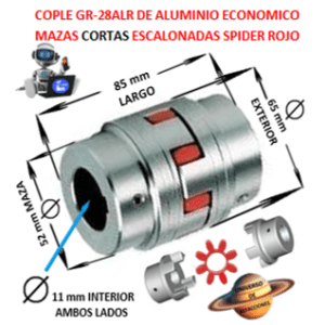 GR-28 AL-D COPLE ROTEX ( KTR ) DE ALUMINO MAZAS ESCALONADAS (1) PILOTO CON SPIDER 98ShA PURPURA EXTERIOR 65mm LARGO 90mm