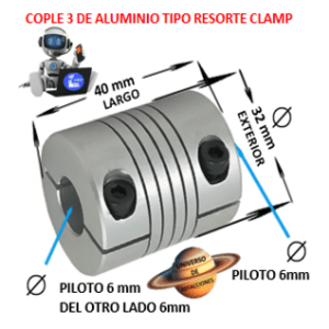 COP3ACNC32X40/6/6 Cople Flexible De Aluminio Tipo Resorte EXTERIOR 32mm LARGO 40mm