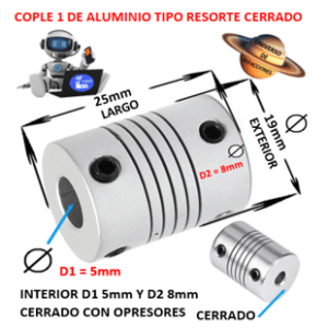 COP2ACNC25X30/5/6 Cople Flexible De Aluminio Tipo Resorte EXTERIOR 25mm LARGO 30mm