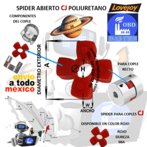 CJ14 SPIDER LOVEJOY DUREZA 92A ROJO DE URETANO A=30mm W=10mm H=10mm CENTRO ABIERTO NO. PARTE 68514462067