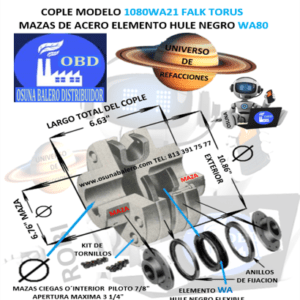 1080WA21 COPLE FALK TORUS CON ELEMENTO HULE NEGRO 80WA EXTERIOR 10.86” LARGO 6.63”