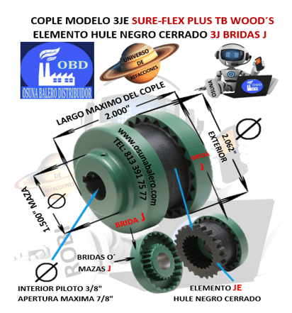 ENVIO INMEDIATO, DIMENSIONES: EXTERIOR = 2.062″ LARGO = 2.000″ MAZA = 1.500″ INCLUYE: 2 BRIDAS 3JX Y 1 HULE NEOPRENO FLEXIBLE 3JE, 3-JE, TBWOOD´S PARA BRIDA O MAZA FLENGE 3J, EQUIVALENTE: MARTIN QUADRA-FLEX SLEVEE TIPO 3JEM, 3-JEM, Ver Ficha Técnica Aquí