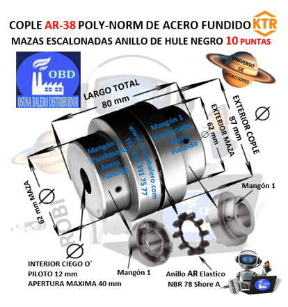 ENVIO GRATIS, ENVIO 24 A 48 HRS. DESPUES DE CONFIRMAR EL PAGO DEL PRODUCTO. DIMENSIONES: INTERIOR CIEGO O´ PILOTO EXTERIOR = 87mm LARGO = 80mm MAZA= 62mm, INCLUYE 2 PIEZAS DE MANGON 1 CON ANILLO 10 PUNTAS FLEXIBLE HULE NEGRO NBR DUREZA 78 Shore A, EQUIVALENTE: NO TIENE, Ver Ficha Técnica Aquí
