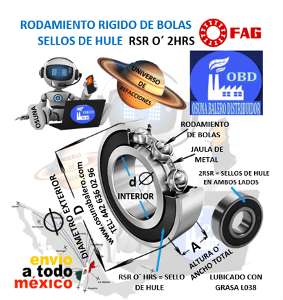 ENVIO INMEDIATO, DIMENSIONES: d= 30 mm D= 72 mm A= 19 mm EQUIVALENTE: SKF 6306-2RS, NSK 6306-DU, ECONOMIC 6306-RS, Ver Ficha Técnica Aquí