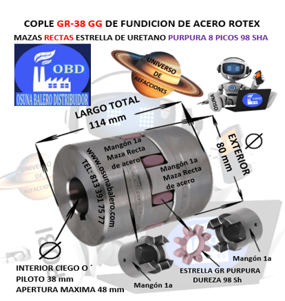 ENVIO GRATIS, ENVIO 24 A 48 HRS. DESPUES DE CONFIRMAR EL PAGO DEL PRODUCTO. DIMENSIONES: EXTERIOR =80mm LARGO =114mm (GG)= HIERRO FUNDIDO, EQUIVALENTE: LOVEJOY CJ38/45B NO. PARTE 68514460882, CJ 38 B Curved Jaw, CJ-38-B, OPTIBELT HABIX HWN238, FABRICADO EN MATERIAL FUNDCION DE ACERO GRIS (GJL) GG 38 CAST IRON GJL, Ver Ficha Técnica Aquí
