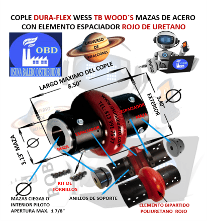 ENVIO GRATIS, ENVIO INMEDIATO DESPUES DE CONFIRMAR EL PAGO DEL PRODUCTO. DIMENSIONES: EXTERIOR = 5.40” LARGO = 8.50” MAZA = 3.13″ INCLUYE: 1 ELEMENTO ROJO WES5 Y 2 MAZAS WE5HMPB A BARRENO PILOTO EQUIVALENTE: ES5 COPLE OMEGA REXNORD, ES-5, Ver Ficha Técnica Aquí