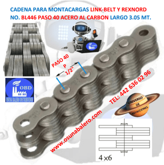 ENVIO INMEDIATO, CAJA 3.05 Mts ( 10FT. ) CADENA 40 4 X 6 LINK-BELT MONTACARGA EQUIVALENTE MORSE, TSUBAKI, REXNORD, TRANSLINK BL-446