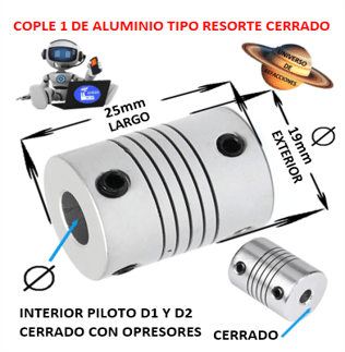 COD. S0/QE4 ENVIO INMEDIATO, DIMENSIONES: EXTERIOR 19mm LARGO 25mm Interior de un lado 5mm y del otro 8mm, Cople Flexible para Cnc, Impresora 3d, Robot, Numérico, Encoder, Ver Ficha Técnica Aquí