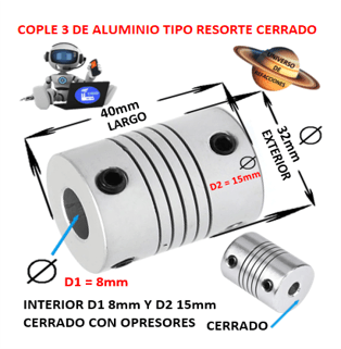 COP3ACNC32X40/8/15 Cople Flexible De Aluminio Tipo Resorte EXTERIOR 32mm LARGO 40mm