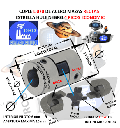 COD. S1/QE4 ENVIO INMEDIATO, DIMENSIONES: EXTERIOR =35mm LARGO=50.8mm EQUIVALENTE: MARTIN ML 070, MS 070, SRL 070, SRL070, LOVEJOY L-070, ACOPLE INDUSTRIAL. Ver Ficha Técnica Aquí