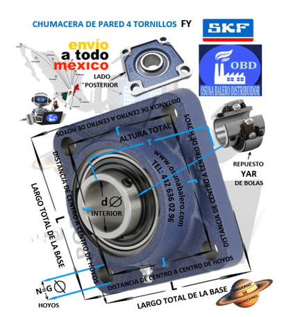 ENVIO 24 A 48 HRS. DIMENSIONES: FLECHA d= 17mm J= 54mm L= 76mm T= 32.9mm N= 11.5mm, CAJA DE ACERO FUNDICION FY 503 M, RODAMIENTO YAR 203-2F, EQUIVALENTE: RHP SF-17mm, ECONOMICA UCF203, DODGE F4B-SC-17 NO. 125885, Ver Ficha Técnica Aquí