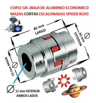 COD. S3/QF4 ENVIO INMEDIATO, DIMENSIONES EXTERIOR =65mm LARGO =85mm EQUIVALENTE ROTEX KTR 28 TIPO 1, LOVEJOY CJ 28/38 TIPO A 68514460881 TIPO B , HABIX HWN128AL, ELEMENTO ROJO, 92 SHORE RED GR-28 Curved Jaw, STERNH28, ECONOMICO GR28-ALR