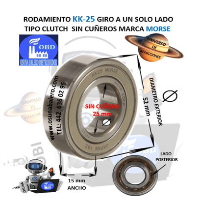 KK-25 MORSE CLUTCH FRENO DE CONTRAVUELTA INTERIOR =25mm EXTERIOR =52mm ANCHO =15mm