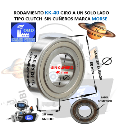 ENVIO GRATIS, ENVIO 24 A 48 HRS. DESPUES DE CONFIRMAR EL PAGO DEL PRODUCTO. DIMENSIONES: INTERIOR =40mm  EXTERIOR =80mm ANCHO =18mm EQUIVALENTE: GMN FK-6208, KK40, TSUBAKI BB40, BB-40, STIEBER CSK40, CSK-40, Ver Ficha Técnica Aquí