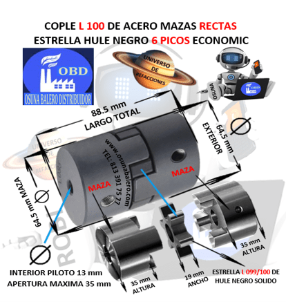 COD. S1/QE4 ENVIO INMEDIATO, DIMENSIONES: EXTERIOR =64.5mm LARGO =88.5mm EQUIVALENTE: MARTIN ML 100, MS 100, SRL 099/100, SRL099/100, LOVEJOY L-100, NO.2 FIERRO ANTIMONIO FABRICACION NACIONAL. Ver Ficha Técnica Aquí