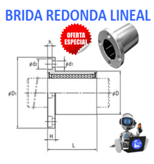 COD. S0/Qi3 ENVIO INMEDIATO, DIMENSIONES: d= 20mm D= 32mm B= 42mm D1= 54mm CHUMACERA DE BRIDA REDONDA DE 4 TORNILLOS EQUIVALENTE: SAMICK LMF-20-UU, MISUMI LMF 20 UU, CHUMACERA LINEAL CON BRIDA, ROUND FLANGE LINEAR BEARING