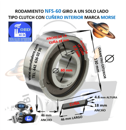 ENVIO GRATIS, ENVIO 48 A 72 HRS. DESPUES DE CONFIRMAR EL PAGO DEL PRODUCTO. DIMENSIONES INTERIOR =60mm EXTERIOR =130mm ANCHO =46mm CLUTCH DE RODILLOS, ROLLER BRAKE WITH KEYWAY BORE EQUIVALENTE: STIEBER ASNU-60, MORSE NFS60, RENOLD REUSNU-60, Formsprag USA ASNU60, Ringspann FSN60, TSUBAKI TFS60, NFS60 FREEWHEEL, Ver Ficha Técnica Aquí