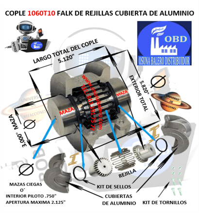 ENVIO GRATIS, ENVIO INMEDIATO DESPUES DE CONFIRMAR EL PAGO DEL PRODUCTO. DIMENSIONES: EXTERIOR 5 13/16″  LARGO 5 1/8”  MAZA 3″   REXNORD FALK STEEL-FLEX NO. 1060T10, 1060T MAZA, 1060T10 CUBIERTA, 1060-T-10 ELEMENTO FLEXIBLE GRID. Ver Ficha Técnica Aquí