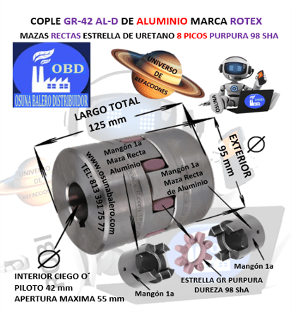 ENVIO GRATIS, ENVIO 24 A 48 HRS. DESPUES DE CONFIRMAR EL PAGO DEL PRODUCTO. DIMENSIONES: EXTERIOR =95mm LARGO =126mm EQUIVALENTE: LOVEJOY CJ42/55B, CJ 42 B Curved Jaw, CJ-42-B, OPTIBELT HABIX HWN242, GR42 Ver Ficha Técnica Aquí