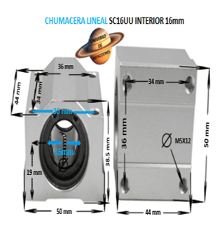 COD. S4/QH2 ENVIO INMEDIATO, DIMENSIONES: INTERIOR =16mm ALTURA =38.5 LARGO =44mm BASE LINEAL CERRADA DE ALUMINIO, EQUIVALENTE: THOMSON SPM-16, SSEPBM-16 SUPER SMART, THK SC16UU, SAMICK SC-16-UU, LINEAR MOTION BUSHING