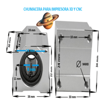 COD. S6/QH2 ENVIO INMEDIATO, DIMENCIONES: INTERIOR 8mm ANCHO 34mm Altura 22mm LARGO 30mm, EQUIVALENTE: SCS08UU, R-SCS-08-UU, CHUMACERA LINEAL DE ALUMINIO.
