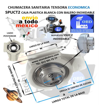 COD. S3/QA4 ENVIO INMEDIATO, FLECHA d= 1 1/4” h= 76mm a= 125mm k= 12mm, CHUMACERA TENSORA SANITARIA CAJA PLASTICA BLANCA PARA INDUSTRIA ALIMENTICIA CON BALERO ACERO INOXIDABLE, EQUIVALENTE: SKF TUWK 1 1/4 YTH, DODGE 127542 WSTU-SCEZ-104S-PCR EZ-KLEEN, ECO S-UCTPL206-20W, SUCT 206-20, TRANSLINK SUCTP-206-20, OBD SPUCT-206-20, Ver Ficha Técnica Aquí