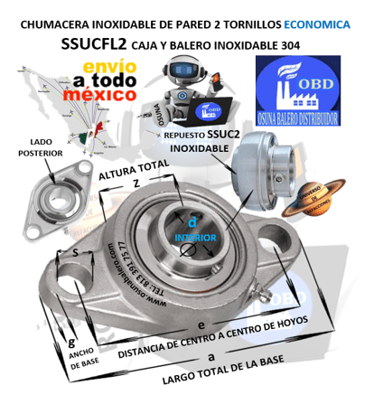 ENVIO 24 A 48 HRS. DIMENSIONES: FLECHA d= 1 15/16” e= 157mm a= 197mm z= 54.6mm, BRIDA Y BALERO ACERO INOXIDABLE 304 DE 2 TORNILLOS, EQUIVALETE: ECO SSUCFL-210-31, TRANSLINK SS-UCFL210-31, OBD UCFL-210-31-SS, Ver Ficha Técnica Aquí