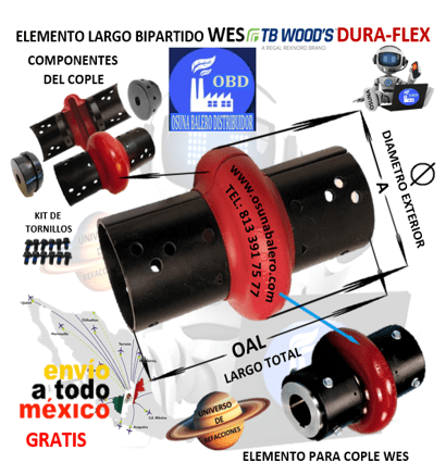 ENVIO INMEDIATO, DIMENSIONES: A= 14.00” OAL= 13.17” DURAFLEX EQUIVALENTE: ES70 ELEMENTO OMEGA REXNORD, ES-70, Ver Ficha Técnica Aquí