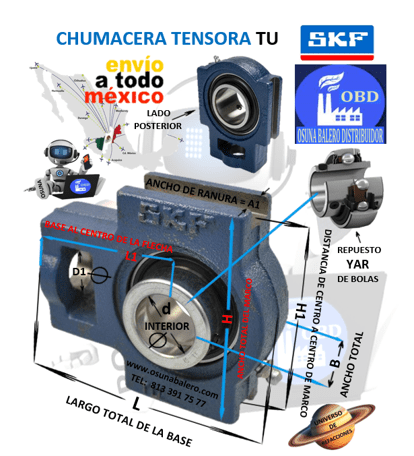 ENVIO GRATIS, ENVIO 24 A 48 HRS. DESPUES DE CONFIRMAR EL PAGO DEL PRODUCTO. DIMENSIONES: FLECHA d=20mm H1= 76mm* H= 92mm D1= 19mm* B= 31mm L1= 62mm L= 97mm A1= 13.5mm* CAJA DE ACERO FUNDICION TU 504 M, RODAMIENTO YAR 204-2F, EQUIVALENTE: RHP ST-20mm, ECONOMICA UCT204, DODGE WSTU-SC-20M NO. 125910, * VERIFICAR PUEDEN CAMBIAR LAS MEDIDAS SEGÚN LA MARCA, Ver Ficha Técnica Aquí