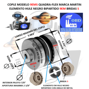 9EMS COPLE MARTIN QUADRA-FLEX NEGRO BIPARTIDO CON ARO RETENDOR EXTERIOR 6.350” LARGO 5.063”
