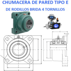 F4B-E-215R CHUMACERA TIPO E DE RODILLOS DODGE DE PARED 4 TORNILLOS FLECHA 2 15/16” No. 023110